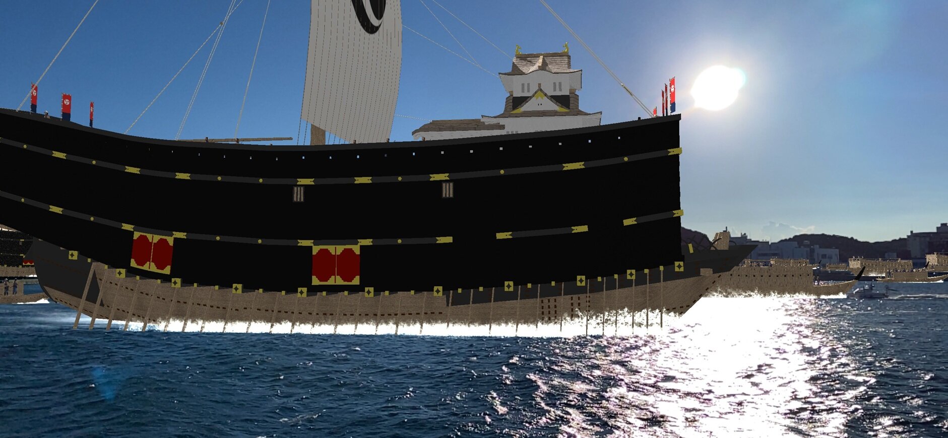 アプリ「鳥羽AR」を使って、海上を突き進む "6隻の信長の鉄甲船" 擁する九鬼水軍の雄姿をARで体験できますよ。![]()